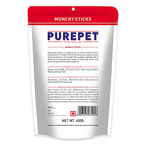 Specification: PUREPET Dog Treat Munchy Sticks, Mutton Flavour 400G Pack, All Life Stages