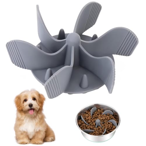 CUTTABLE: The each silicone spiral fan is used to make the dog food can evenly allocate in each compartments, and silicone is cuttable for fitting various size of dog bowl. Best for dog bowls with a bottom diameter of 7-5.5″(opening of 8.5-5.5 Inches) and can be cut to fit a minimum of 4.7″ dog bowls.