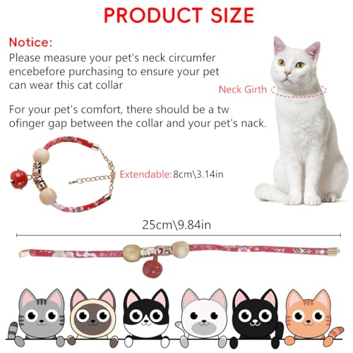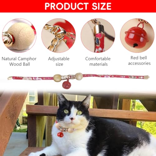 UNIQUE JAPANESE DESIGN: This cat collar stands out with its exotic print on a red rope, exuding a unique Japanese aesthetic. Blend of cultural artistry and modern style makes this cat collar a fashionable accessory for any feline, sure to grab attention wherever they go.