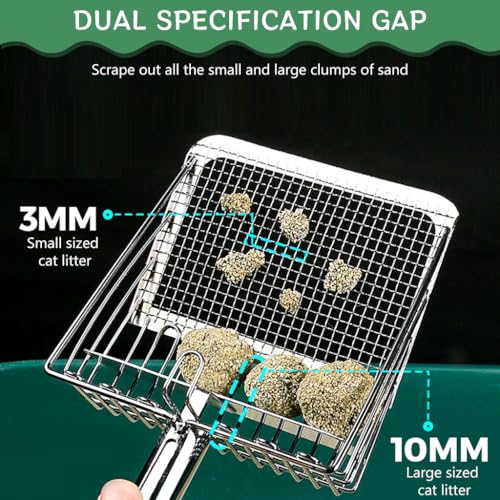 Specification: Qpets® Cat Litter Scoop, Full Metal Sieve Litter Scoop for Clumping Clay Cat Litter Push & Pull Design Cat Litter Scoop (Dual Size Gap: 0.3cm/1cm)