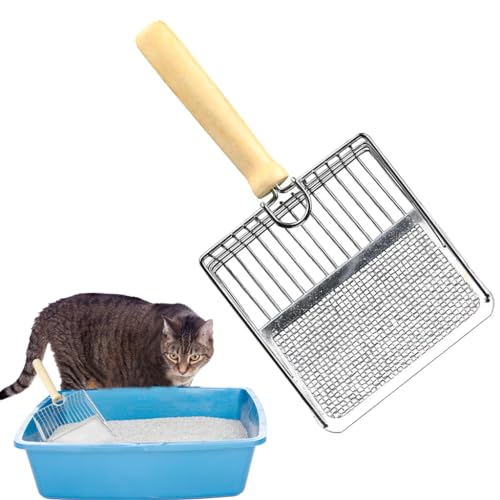 EASY TO CLEAN AND MAINTAIN: Featuring a metal mesh and wooden handle combo, our scoop comes with a convenient hook for easy storage. Its universal design fits seamlessly with a wide range of cat litter boxes, making it an essential accessory for your feline’s hygiene needs.
