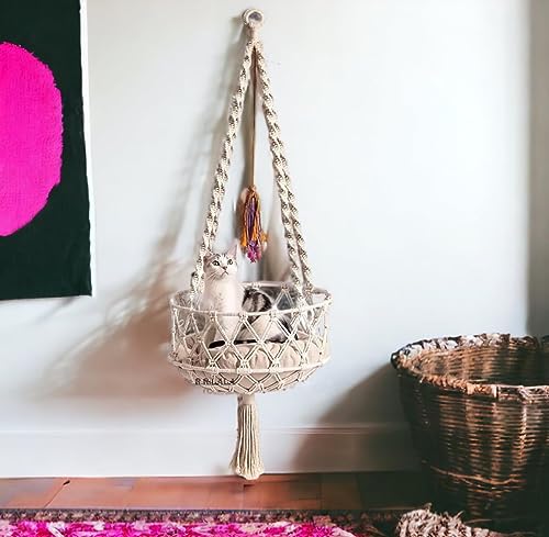 Specification: R.R.LALA Cat Hammock For Cats, Macramã© Cat Bed, Boho Hanging Pet Bed, Macramã© Cat Swing, Cat Gift, Pet Furniture Pet Hammock Without Any Pillow Color: Off White,large