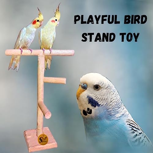 Sage Square Bird Stand 2 Stairs 13 Inches | Natural Wood Training Gym, Exercise Perch | Ideal for Parrot, Cockatiel, Love Bird | Playful & Durable Bird Toy, Multiple Branches for Enriching Bird’s