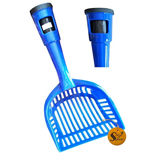 Large Capacity with Built-in Waste Bag Handle/Holder: Our scooper features a spacious shovel with a generous capacity, ensuring that you can tackle any litter box mess, no matter the size. The built-in waste bag handle/holder securely holds the waste bag in place, preventing any accidental spills or leaks. You can confidently scoop up waste without worrying about it falling out or creating a mess.It is designed to withstand regular use and is capable of handling even the toughest waste.
