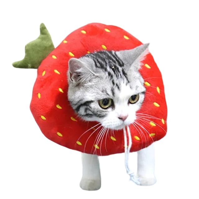 Specification: Shopipistic Cute and Soft Cat Collar Cone, Breathable, Adjustable Elizabeth Cat Collar to Prevent Licking, Scratching Wounds, Fashionable Pet Recovery Collar, Cat Toy,Strawberry, Size S (D: 12-22 cm)