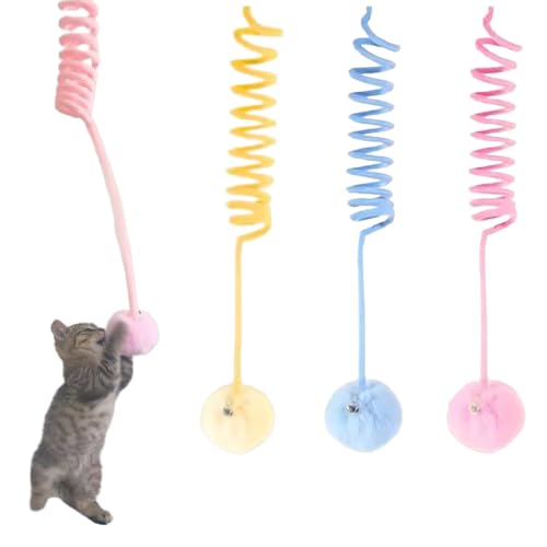 Specification: Shopipistic Door Hanging Interactive Cat Toy, Hi Suction Cup Plush Spring Toy with Rabbit Hair Ball and Bell, Retractable Suspension Swinging Long Extend Self Playing Funny Cat Toy- Random Color 1 Pc
