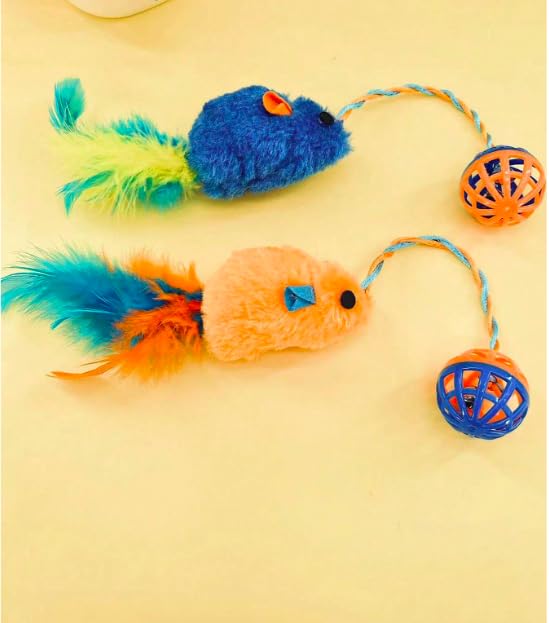 Cat Bell Ball & Feisty Plush Mouse dangling from a durable string, the soft mouse toy with a tempting feather tail triggers your cat’s natural pouncing instincts. Watch them stalk, swat, and pounce for hours!. Solo or Interactive Play, This toy is perfect for independent or interactive fun. Let your cat bat and chase on their own, or get involved by dangling the mouse and teasing out their hunting spirit.
