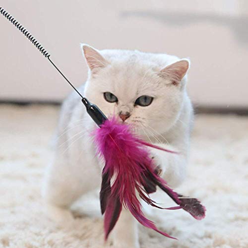 SPRING STICK – Bright feather with colorful beads and spring design, attract cats attention easily.