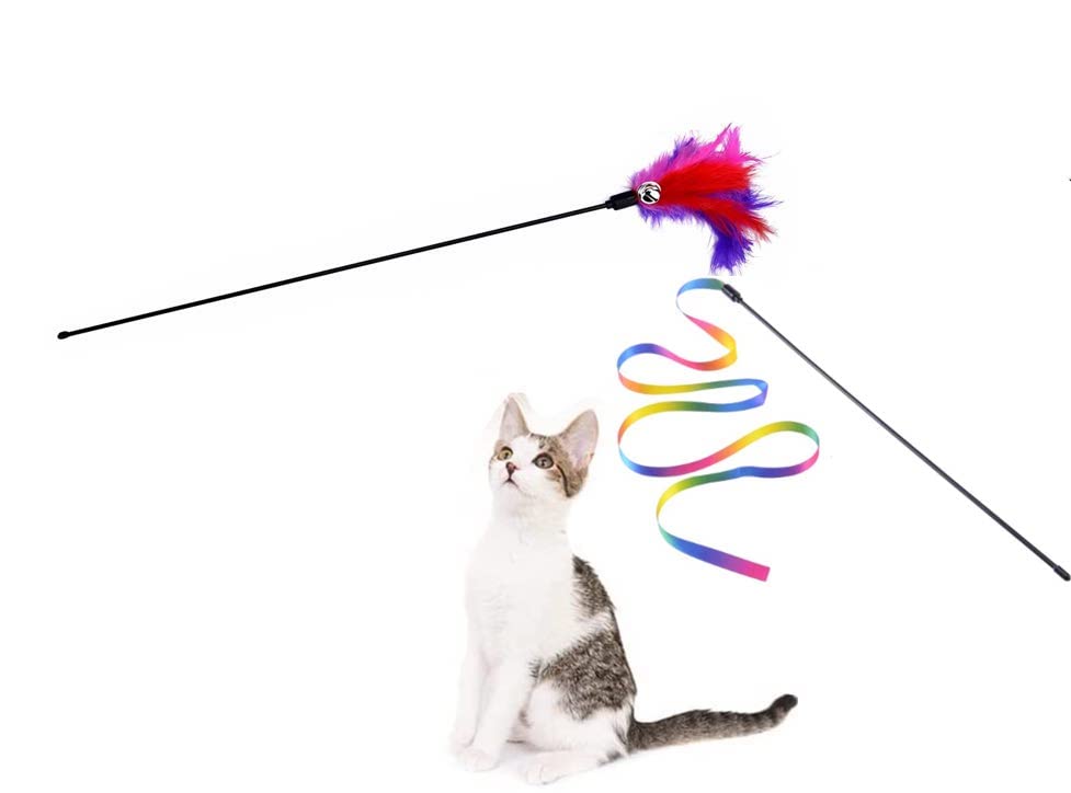 Specification: The Pets Company Cat Wand Teaser Toy | Feather + Ribbon Tassels | for Kittens + Older Cats | Interactive Cat Playing Toy | Set of 2