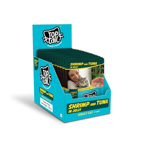Specification: Top tail Adult Wet Cat Food-12 Pouches, 12×85 gm (Above 12 Months) | Shrimp & Real Tuna in Jelly Flavour Healthy & Tasty High Protein Cat Food |Fortified with Vitamins & Minerals