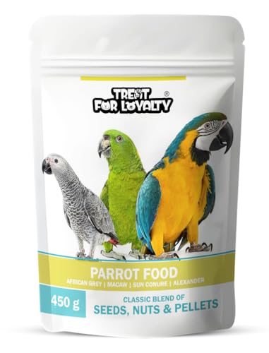 Treat for Loyalty® Parrot Food | Seeds, Nuts & Fruit Pellets | African Grey Parrot,Sun Conure,Macaw,Lovebird and Alexander Premium Seed Blend – 450g