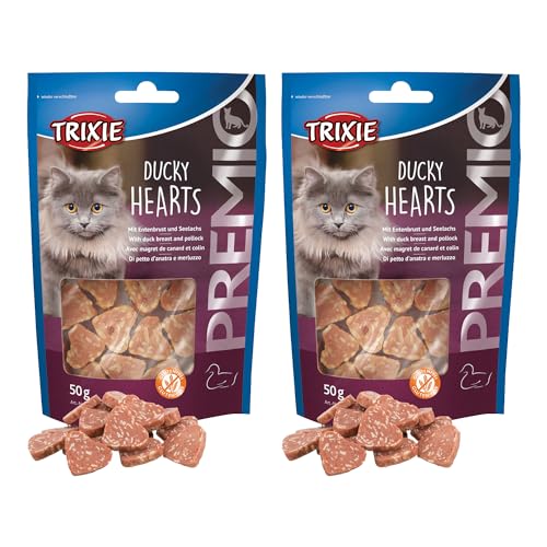 Trixie Premio Cat Treats, Delicious and Rich in Nutrients, Healthy Treats for Cats, Suitable for All Breeds of Cats – 50 gm, Pack of 2 (Ducky Hearts)