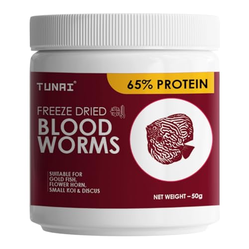 Specification: TUNAI Superior Freeze Dried Blood Worms 50G Natural Fish Food for All Life Stages Tropical Fishes Like Arowana, Oscar, Gold Fish, Flowerhorn, and Discus with 65% Protein
