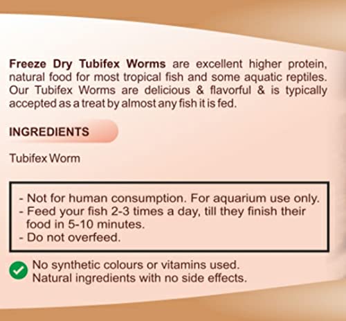 Specification: V aquaria (50gms) Freeze Dry Tubifex Worms Fish Food Suitable for Guppies, Betta, Tetra, Oscar, Mollies, Gold Fish, Cichlids & All Other Finicky Fish from Baby to Adult