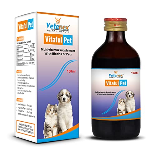 Specification: VETENEX Vitaful Pet – Multivitamin Supplement Syrup with Biotin, Vitamin D3, Vitamin E, Vitamin C, Vitamin A | Builds Immunity, Growth & Appetite for Dogs, Puppy and Cats – 100 ML