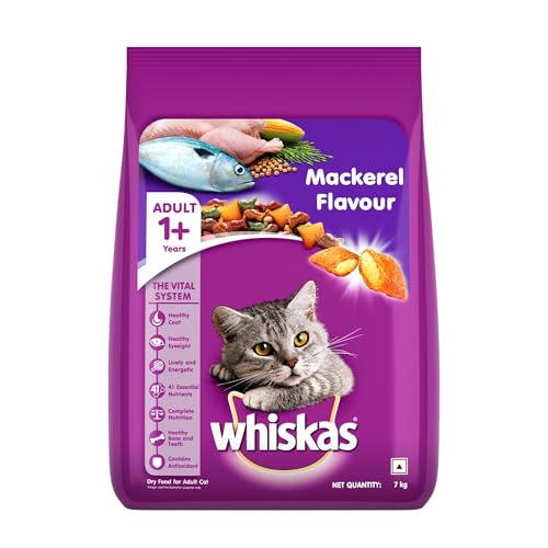 Specification: Whiskas Adult (1+ Years) Dry Cat Food, Mackerel Flavour, 7 kg, Contains 41 Essential Nutrients, Complete & Balanced Nutrition for Adult Cats