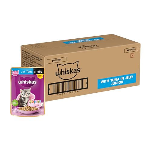 😺COMPLETE AND BALANCED NUTRITION: Whiskas Junior Kitten (2-12 months) Wet Cat Food provides 100% complete & balanced nutrition. 🐟DELICIOUS FLAVOUR: Whiskas Junior Wet Cat Food, Tuna in Jelly, contains a jelly texture and aroma that appeal to the palate of your feline. ✅QUALITY INGREDIENTS: Whiskas cat food is made delicious & nutritious with real fish & healthy ingredients. 🍚NOURISHING FOOD: This high-moisture cat food supports hydration. Omega 6 & Zinc support healthy skin & coat while DHA supports brain & eyesight development. 🐈⬛HEALTH BENEFITS: It contains Taurine for healthy vision, 41 essential nutrients for healthy growth, & quality protein for strong muscles.