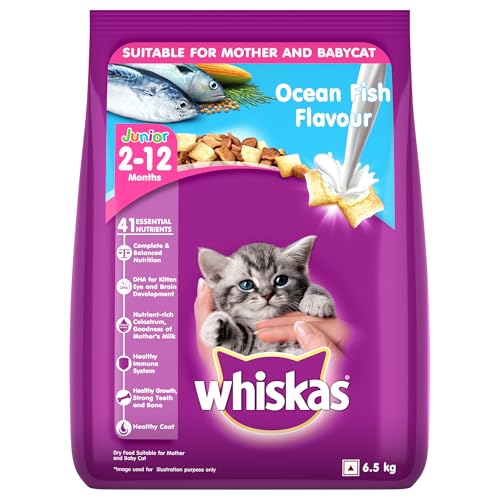 Specification: Whiskas Junior Mother Cat & Kitten (2-12 Months) Dry Cat Food, Ocean Fish Flavour, 6.5 kg, Contains 41 Essential Nutrients, Complete & Balanced Nutrition for Mother Cats & Kittens
