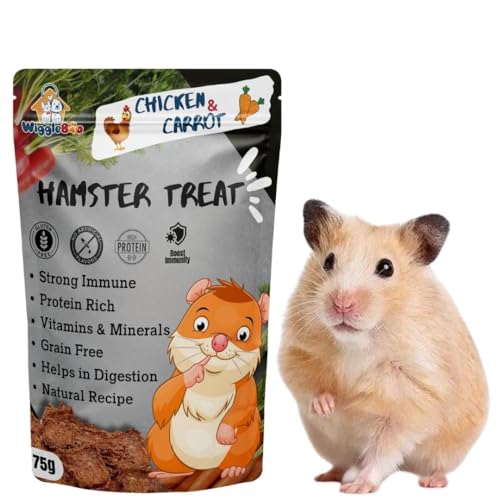 WiggleBoo Chicken & Carrot Hamster Treat | Protein Rich | Healthy Crunchy Food Snack | 75g