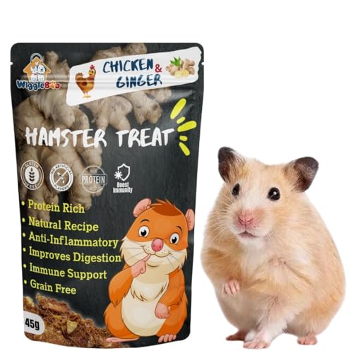 WiggleBoo Chicken & Ginger Hamster Treat | Protein Rich | Anti-Inflammatory | Crunchy Healthy Snacks | (45Grm)