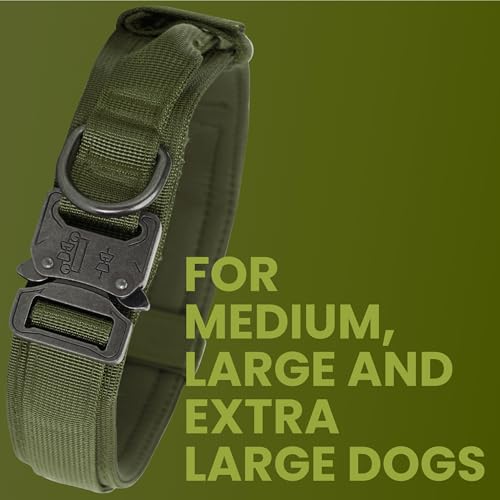 Specification: Wooflix Metal Dog Collar for Training and Walks | Nylon Collar with Tactical Metal Buckle and D-Ring for Medium and Large Dogs | Dog Collar for Medium and Large Dogs (Large, Army Green)