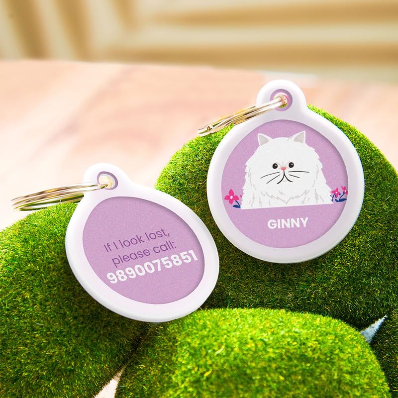Zooboo Personalized Pet Collar Charms with Pet’s Name and A Unique Theme, Pet Collar Name Tags for Your Furry Friend Theme – Persian Cat White