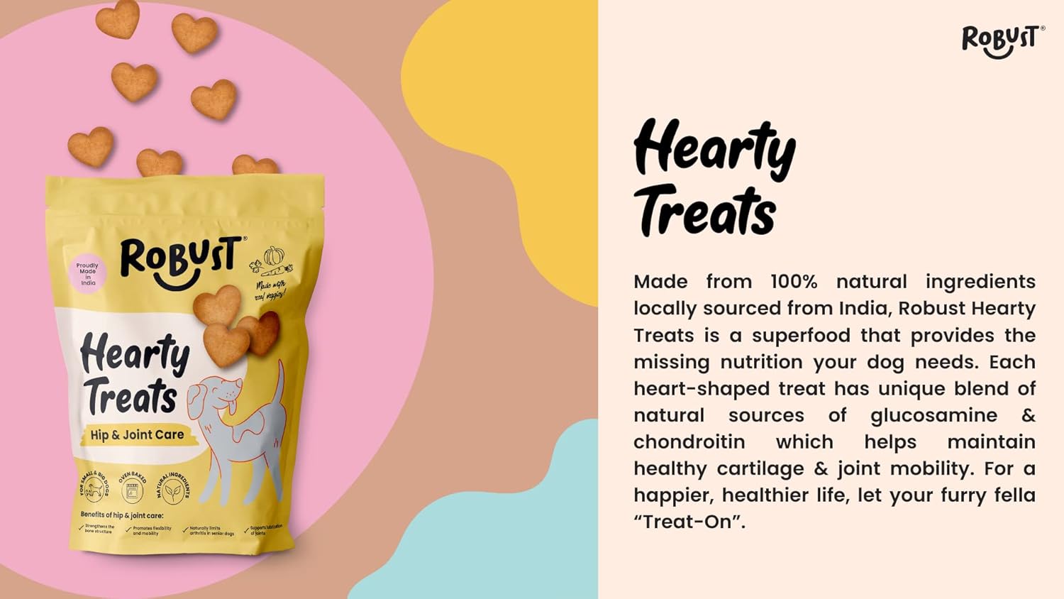 ADVANCED NUTRITION: Robust Hearty Treats (Hip & Joint Care) offer advanced nutrition that is specially formulated to support healthy cartilage and joint mobility in dogs of all breeds and life stages.