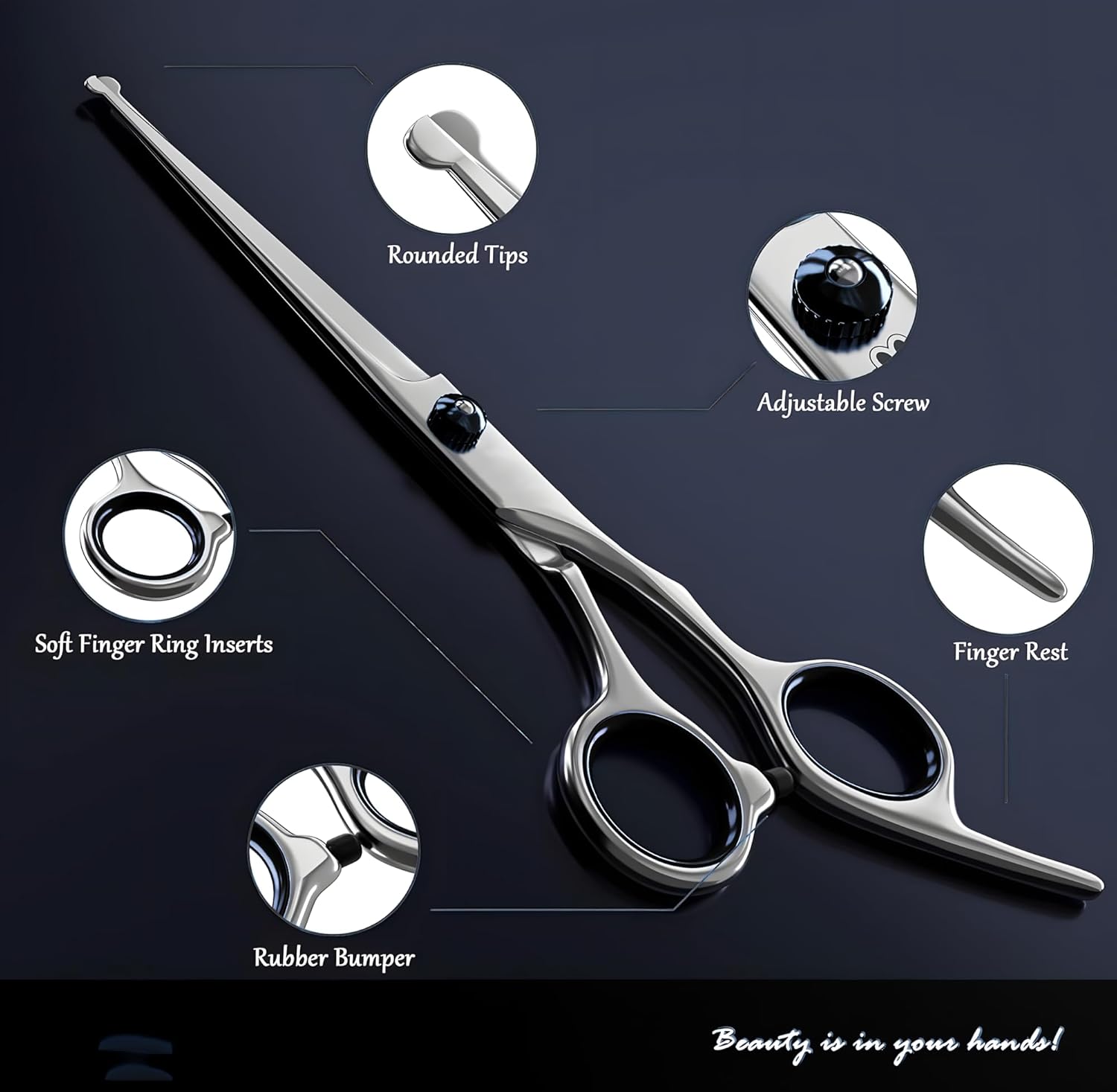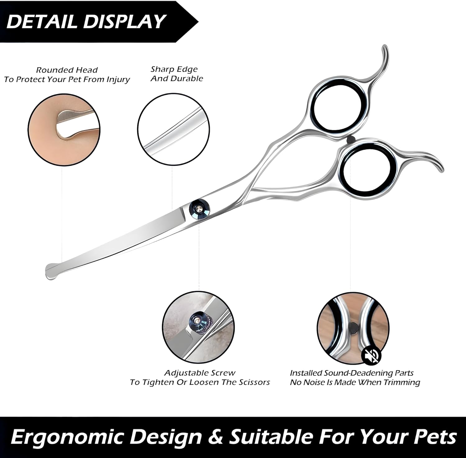Safe Round Head – This professional curved dog grooming scissors is designed with round tips, so don’t worry about hurt the pets in accident, especially when grooming the sensitive areas like the eyes, face, nose and paws.