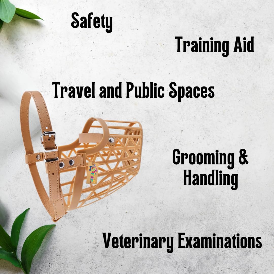 Secure and Adjustable Design: Our muzzle’s adjustable strap ensures a customized fit for dogs, preventing any discomfort or slipping. The secure buckle fastening system guarantees a snug and reliable hold, giving you peace of mind during walks and outings. Say goodbye to worries about unexpected incidents and protect your dog and others around them. Easy to Clean and Maintain. Simply wipe it clean with a damp cloth after use or hand wash it with mild soap and water